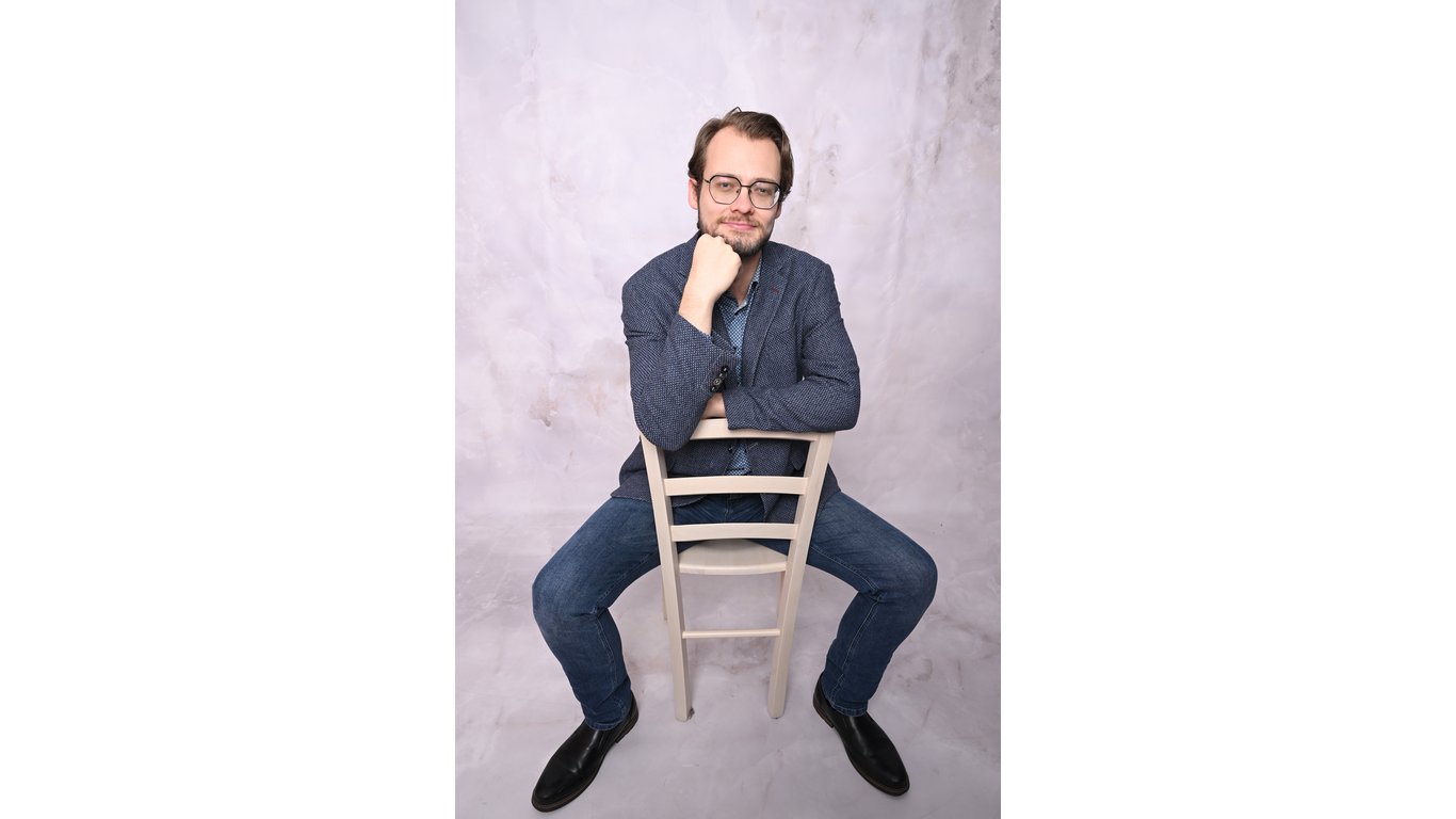 Casting foto op een stoel.