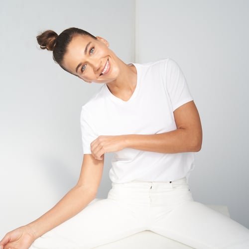 She brings a disciplined, camera-ready presence, combining elegance with a natural, athletic look.
